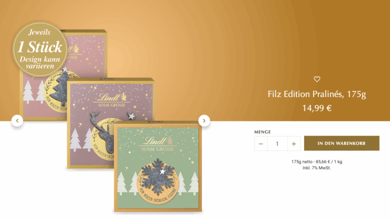 Pralinen „Filz Edition“ | Screenshot von www.lindt.de