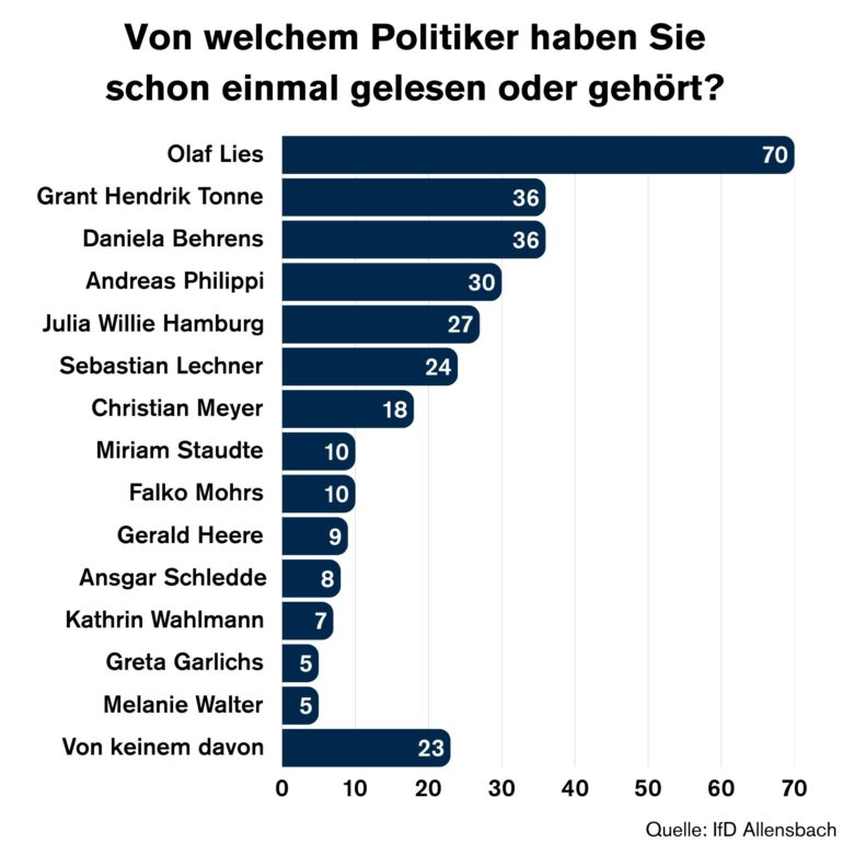 Fazit: In der niedersächsischen Landespolitik zu arbeiten, ist toll, wenn man sonnabends in Ruhe beim Discounter einkaufen will. Man könnte eine komplette Ministerrunde in der Gartenabteilung des nächsten Baumarkts abhalten – und niemand würde davon Notiz nehmen. Für die Betroffenen, die sich gerne profilieren möchten, ist das freilich ein Problem. Vor allem Oppositionsführer Sebastian Lechner hat es schwer: Wer gegen eine Regierung wettert, deren Gesichter das Volk kaum zuordnen kann, kämpft gegen Windmühlen aus Schatten. In der Folge gibt es nur Platz 6 im Bekanntheitsranking.