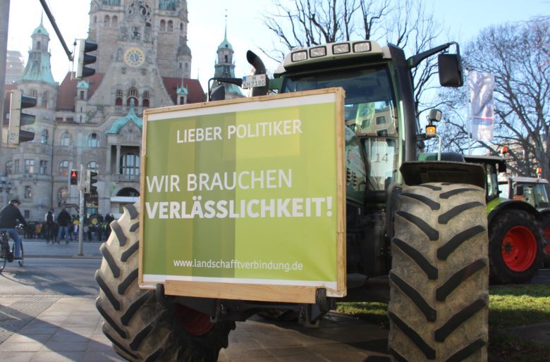Auch Marco Mohrmann, CDU-Landtagsabgeordneter, stellte auf der Demo in Hannover klar, dass es sich bei den nun durch die Landesregierung formulierten Einwänden um ein Verdienst von „Land schafft Verbindung“ handele. Mohrmann versuchte, gemeinsam mit dem SPD-Landtagsabgeordneten Tobias Heilmann, die Politik der rot-schwarzen Landesregierung zu erklären.